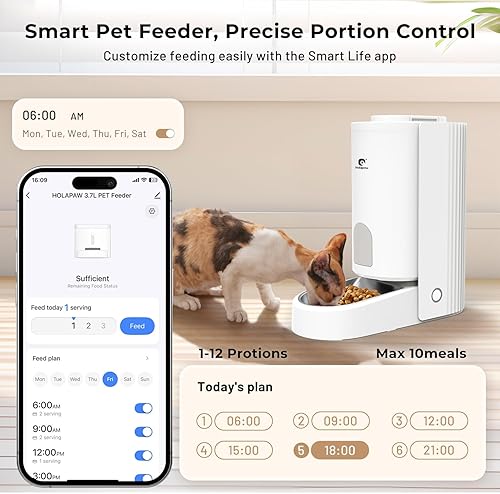 Automatic Cat Feeder - 2.4G WiFi Cat Food Dispenser, 3.7L Timed Pet Feeder with APP Control for Remote Feeding, 1-10 Meals per Day for Small Dog Kitten Indoor, Detachable for Cleaning
