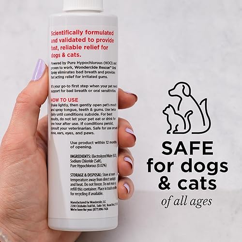 Wondercide Rescue - Oral Spray for Dogs and Cats – Freshens Breath, Soothes Gums, Alcohol Free Daily Dental Care with Pure Hypochlorous – 8.5 oz