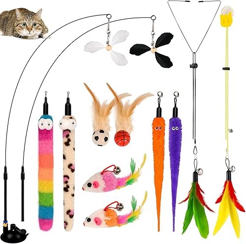 20PCS Cat Toys for Indoor Cats/Kittens - Christmas Stocking Stuffer, Interactive Teaser Wand with Balls & Feather, Fun for Cat Entertainment & Exercise