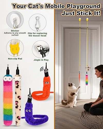 Self Play Hanging Door Cat Mouse Toy - Interactive Cat Toys for Indoor Cats - Fun Hunting Exercise for Bored Adult Cats & Kittens - Top Hanging Cat Toy for Indoor Play (Extended Package)