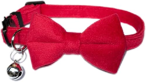 Cat Collar with Bells, Bow Tie Removable, Breakaway Safety Buckle, Soft Velvet Cute, Adjustable for Girl Boy Kitty Kitten Small Pets, 7"-11", Green