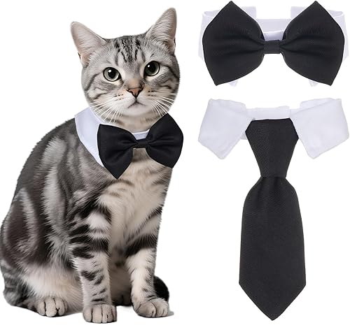 2Pcs Pet Cat Tuxedo Bow Tie Collar, Pets Adjustable Formal Necktie Collar for Cats Small Dogs Puppy Birthday Wedding Gift Costume Accessories