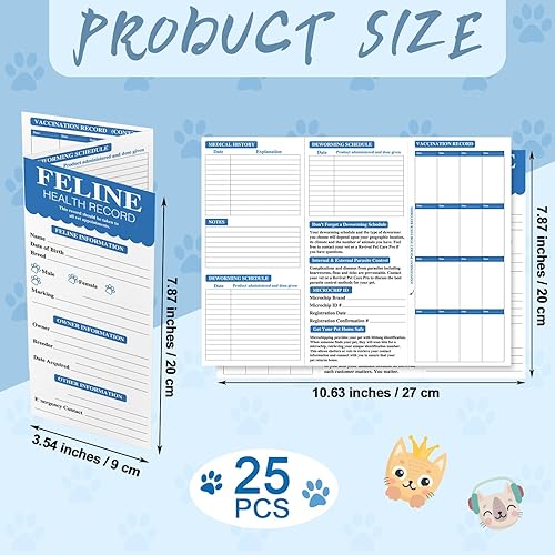 25 Pcs Cat Health Records Cat Vaccine Record Book Kitten Vaccination Record Card Foldable Cat Vaccines Shot Record Kitten Health Record Booklet for Cat Nursing Supplies