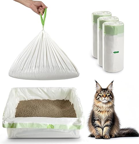 Cat Litter Box Liners Disposal Bags with Tie Handles,Large,37" x 17" Jumbo Drawstring Extra Durable Pet Cat Pan Liners for litter box Extra-Thick Kitty Litter Box Bag-36 Counts (3 Pack)
