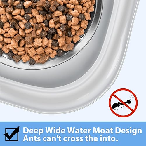 Ant Away Stainless Steel Elevated Cat Bowls with Stand - Tilted Anti Vomiting, Double Food and Water Bowl Set (Grey, 16 Oz)