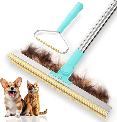 Carpet Rake for Pet Hair Removal - Reusable with Adjustable Long Handle, Dog & Cat Fur Brush & Scraper for Rugs, Floor Mats, Couches, Furniture and Car Interiors