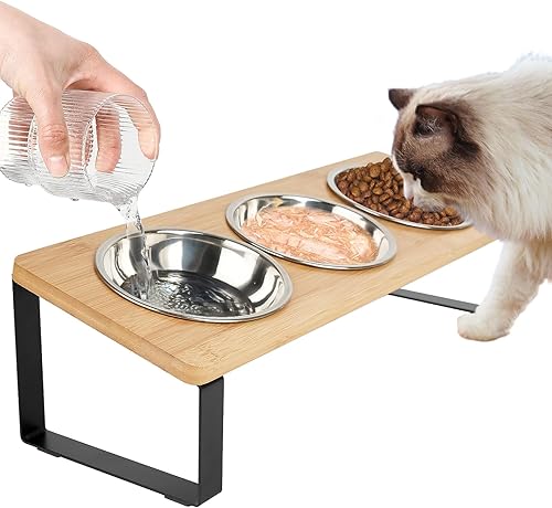Elevated Cat Bowls with 3 Stainless Steel, 15° Tilted Raised Cat Bowl Set, for Indoor Cats for Small Cats and Puppies Pet Bowls with Stand