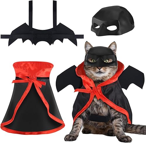 3 PCS Halloween Cat Costume Bat Mask Bat Wings Cloak Pet Costumes for Small Cats Kittens Cosplay Halloween Party Decoration Bat Cat Mask and Apparel Cats Dress Up Accessories