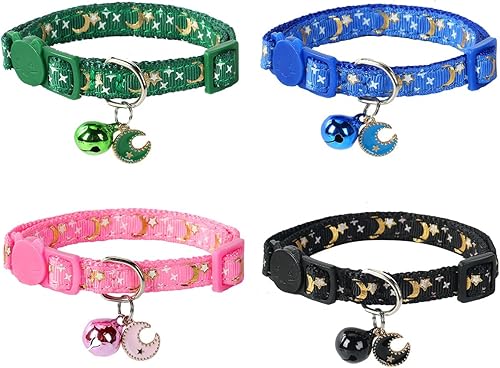 SuperBuddy Cat Collars Breakaway with Bell - 4 Pack Cat Safety Collars for Boys & Girls - Safety Buckle Kitten Collar for Pet Supplies,Stuff,Accessories