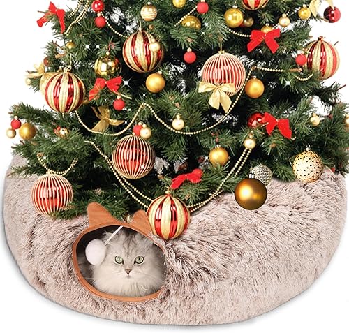 XxingSheep 4 Cave Shuttled XL Cat Tunnel Bed for Indoor Cats Peekaboo Toy Donut with Warm Mat