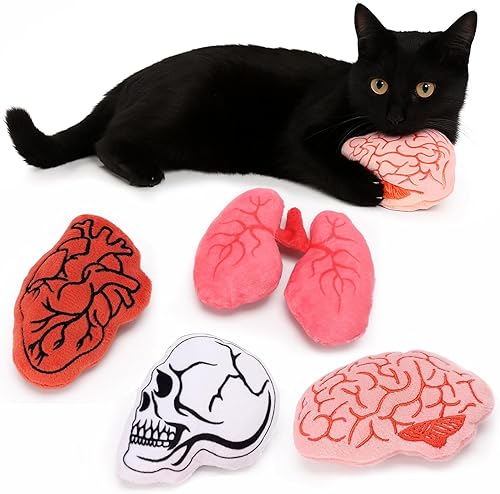 Halloween Cat Toys Catnip 4pcs Cat Chew Toy Interactive Heart Brain Bite Resistant Toys for Cats Boredom Relief Teeth Cleaning Soft Plush Indoor Gift