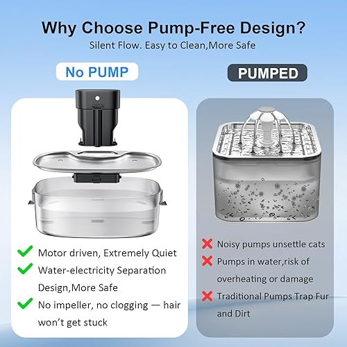 No Pump Wireless Cat Water Fountain,112oz/3.3L Whisper Quiet Pet Water Fountain, Easy-to-Clean for Cat Drinking with 3-Pack Replaceable Filters,Stainless Steel Tray, for Cats, Dogs