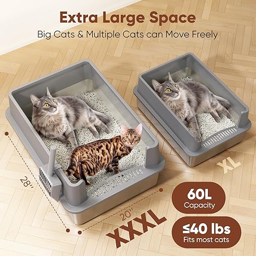 Extra Large Stainless Steel Litter Box with Lid, XXXL XXL Metal Litter Box for Big Cats & Kitty, 28”L x 20”W x 12”H Enclosed Cat Litter Boxes, Never Absorbs Odors, Anti-Urine Leakage, Easy Cleaning
