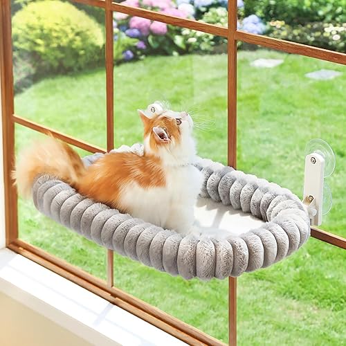 Zakkart SnugCloud Foldable Cat Window Perch - Cordless, Ultra Soft Machine Washable Bed with 4-Sided Bolster, Metal Frame - Window Hammock for Large Cats and Kittens (Cream White, Medium)