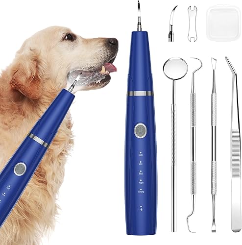 Upgraded Plaque Remover for Teeth, Electric Pet Teeth Cleaning Kit, USB Charging Dog Tooth Brushing Kit, 5 Modes, IPX6 Waterproof Pet Ultrasonic Toothbrush Cleaner for Dogs Cats (Blue)