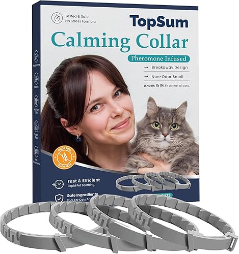 Calming Collar for Cats: Adjustable & Waterproof, Supports Relaxed Behavior – 4 Pack (Ash)