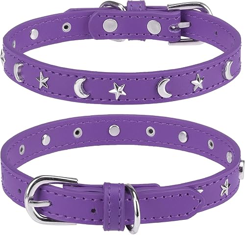 Leather Dog Collar for Puppy Small Medium Dogs, Adjustable Paw Studded Pet Collars with Rust-Proof Metal Buckle and Charms, XS S Dog Collars for Boy and Girls, Black XS