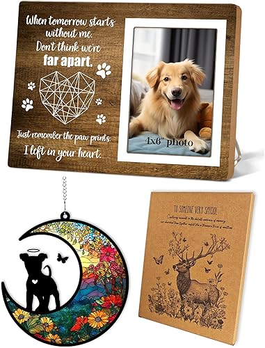 Memorial Picture Fram&Cat Memorial Suncatcher Gift Set, Pet Picture Frame, Sympathy Gifts for Loss of Loved Pet, Bereavement Gifts for Loss of Cat, Remembrance Photo Frame or Memorial Gift, Fits 4x6In Photo(MXK01)