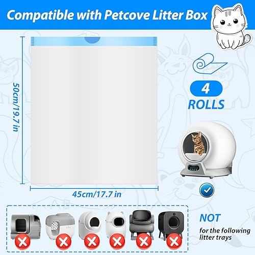 Litter Bags Compatible with Petcove,Durable Replacement Bags Compatible with Petcove Self Cleaning Box,18 x 16 Litter Bag Compatible with Petcove,4 Rolls