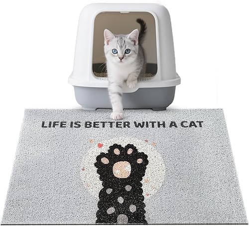 Cat Litter Mat with Non-Slip Bottom 23.3" x 15.4" Cute Litter Box Mat Easy to Clean Washable Cat litter Catcher Mat for Indoor