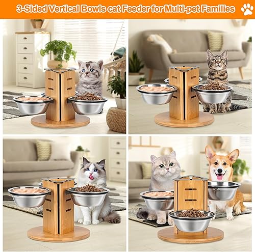 Elevated Cat Bowls, Raised Cat Bowl Feeding Station 3 Adjustable Heights Dishes for Food and Water Bowl Set Heavy Duty Base with 3 Stainless Steel Bowls for Indoor Cats Small Dogs