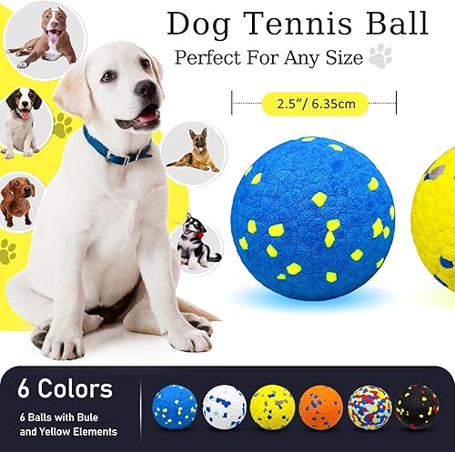 6 Pcs Dog Balls Tennis Ball for Aggressive Chewers Indestructible Dog Teething Chew Toys for Large Medium Small and Puppies, More Biting-Proof Atom.
