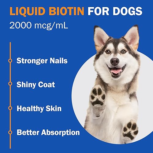 Liquid Biotin Supplement for Dogs, 2000 mcg, Strengthens Dog Nails, Promotes Healthy Coat & Skin with Biotin and Collagen, Slows Down Dog Shedding, Relieves Dry Skin, Faster Absorption, 2 oz
