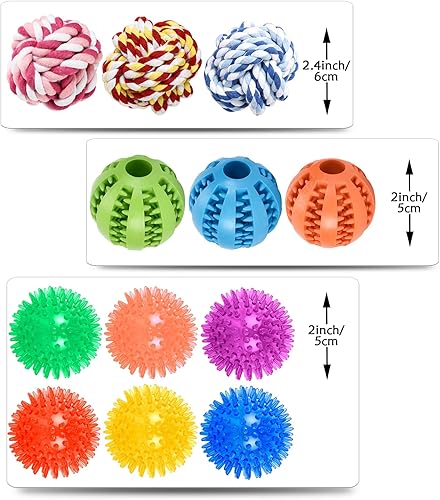 Dog Toy Balls for Small Dogs, 12 Pack Interactive Dog Toys for Small Breed 0-15 lbs, Includes Rubber, Squeak & Rope Balls
