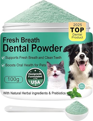 Koite Dog Teeth Cleaning Powder 100g Mint Fights Plaque & Tartar Freshens Breath All-Natural Ingredients for Dogs of All Breeds and Ages Easy to Use Dog Dental Powder E