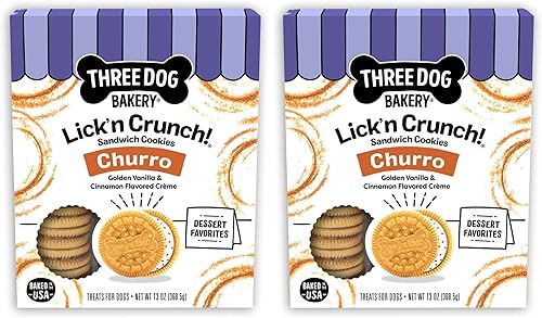 Three Dog Bakery Blueberry Pie Lick’n Crunch! Dog Treats, Dessert-Inspired Sandwich Cookies with Real Blueberries & Vanilla, Crunchy Baked Dog Cookies, Made in The USA, 13 oz