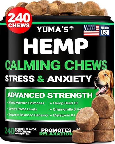 Hemp Calming Chews for Dogs - 240 Treats - Advanced Dog Calming Chews - Anxiety Relief Supplement Treats with Melatonin - Sleep Aid for Separation, Barking, Stress, Hip and Joint Support Made in USA