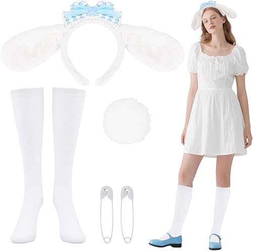 4 PCS Halloween White Dog Costume including Headband Tail Pin Socks for Girl Character Cosplay