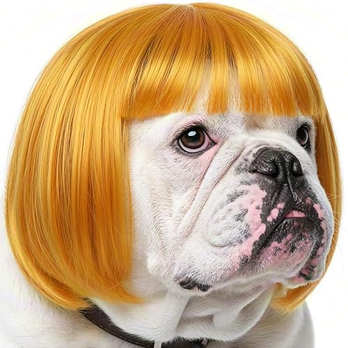 Funny Long Blonde Curly Dog Wig for Small Medium and Large Dogs with Adjustable Elastic Bands, Trimmable Pet Costume Cat Cosplay Decoration for Halloween, Christmas, Parties