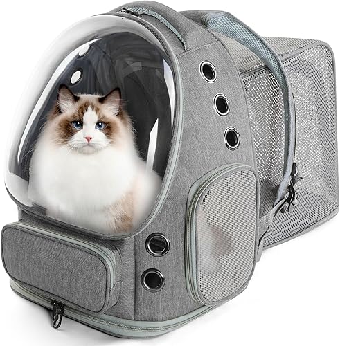 Cat Backpack Carrier, Bubble Expandable Cat Carrier for Cats or Small Dogs up to 15lbs, Airline-Approved, Large Space & Breathable Pet Backpack for Traveling, Hiking