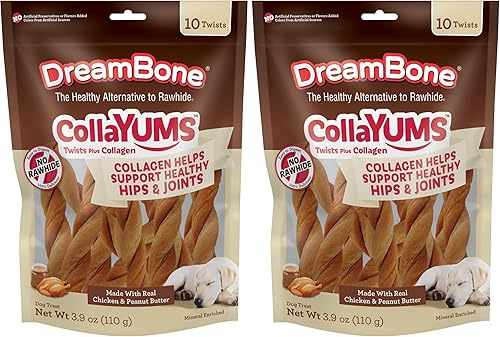 DreamBone CollaYUMS Twists Plus Collagen Chews for Dogs, 20 Count, Treat Your Dog to Rawhide-Free Chews Made with Chicken, Vegetables and Peanut Butter