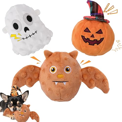 Halloween Dog Toys Set, 3 Pack Plush Squeaky Toys with Crinkle Paper, Interactive Chew Toys for Small Medium Dogs, Stuffed Puppy Toys for Teeth Cleaning, Holiday Pet Gift to Keep Dogs Busy