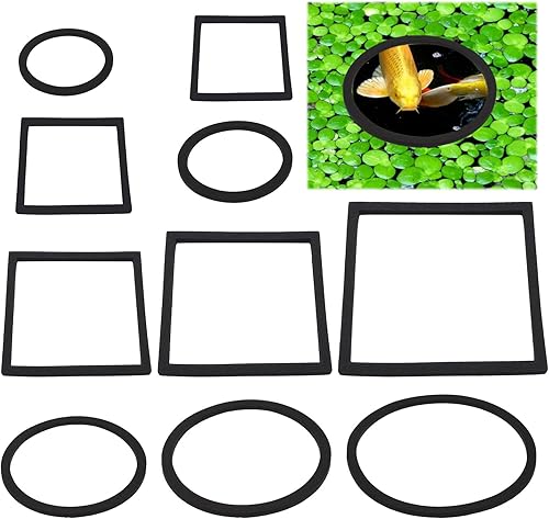 Fish Feeding Rings Set 10 Pcs Floating Aquarium Plant Corral Round and Square Feeder Ring for Keep Floating Plants, Fish Feeding, Aquarium Accessories (Black)