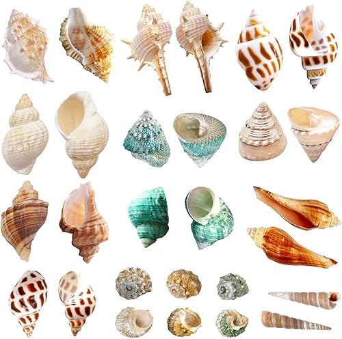 Lucky Baby 15+pcs Hermit Crab Shells Small to Medium Sea Conch Size 1/4-1 1/2 Inches Natural Growth Turbo Seashells Conch for Small Hermit Crab Turbo Shells