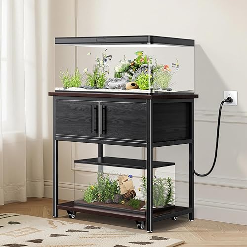 20-29 Gallon Fish Tank Stand with Power Outlet and Storage Cabinet,Aquarium Stand with Slide-Out Fish Tank Shelf,Heavy Duty Metal Frame and Waterproof Wood,31.5" L x 15.7" W 770LBS Capacity