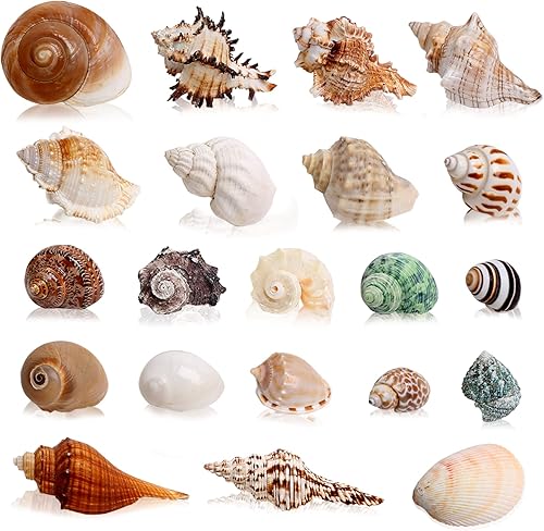 21PCS Hermit Crab Shells Large Medium Small | Sea Conch Size 1.2" - 3.9", Opening Size 0.5" - 2" | Growth Turbo Seashells for Natural Hermit Crab Supplies