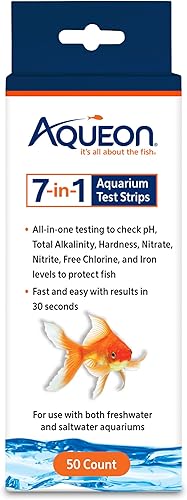 Aqueon 7-in-1 Aquarium Test Strips, Fast Results for pH, Total Alkalinity, Hardness, Nitrate, Nitrite, Free Chlorine and Iron Levels, for Freshwater and Saltwater, 50 Count