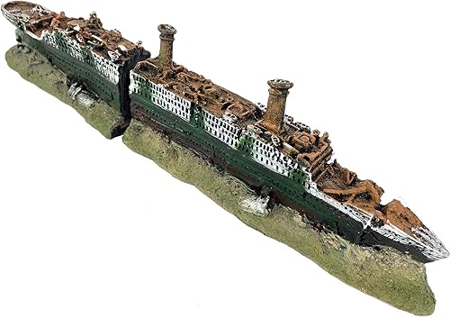 Aquarium Titanic Shipwreck Ornament - Aquarium Small Decor Cave for Fish Tank,Aquarium Small Sunken Ship Ornament Fishtank Decoration for Fishtank - 14.2 Inches Long