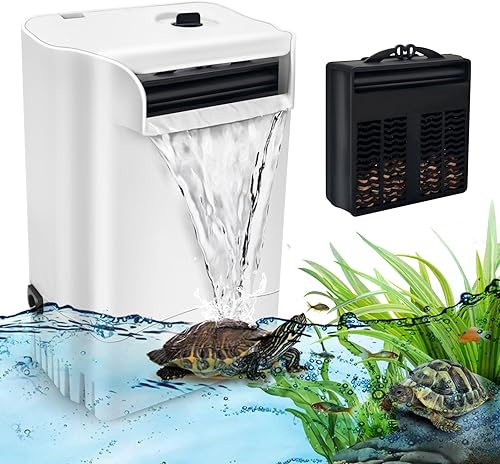 GOZILLA 148GPH Turtle Tank Filter 8W Adjustable Water Flow, Aquarium Filter for Low Water Level Tank, Turtle Filter Quiet Waterfall Fish Tank Filter for 10-30 GAL. (Black)