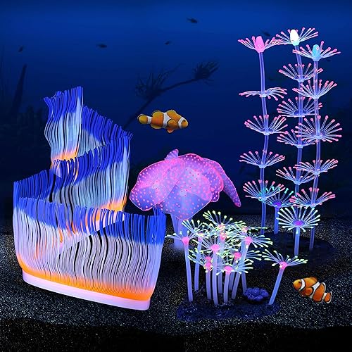 Glowing Fish Tank Decorations Plants, 5 pcs Glow Aquarium Decoration Plants Kit Glowing Sea Anemone Coral Ornaments