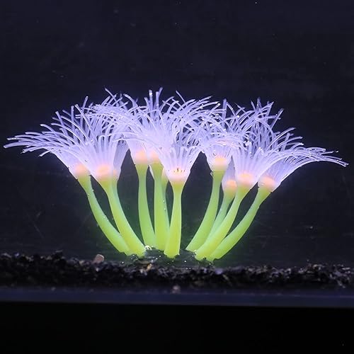 Soft Silica Gel Moves Naturally with Water Flow, Aquarium Decorations Glow in The Dark, Glowing Coral Ornaments for Fish Tank Decorations (Purple, Sunflower)