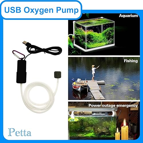USB Oxygen Air Pump for Aquarium, Quiet Mini Air Pump with 1 Sponge Filter, 1 Air Stone for Shirmp Nano Fish Tank & Transporting Aquatic PA152-1