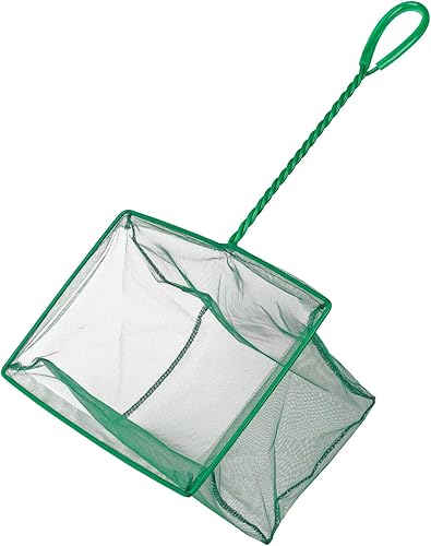 Pawfly Aquarium Fish Net with Braided Metal Handle Square Net with Soft Fine Mesh Sludge Food Residue Wastes Skimming Cleaning Net for Fish Tanks Small Koi Ponds and Pools