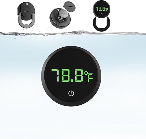 Carefree Fish Aquarium Digital Thermometer Cordless Replaceable Battery LED Display Temperature Measurement Error ±1℉(US Patent Number:D1038779S)
