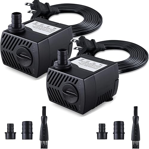 Fountain Pump, 2 Packs 80GPH(4W 300L/H) Submersible Water Pump, Durable Outdoor Fountain Water Pump with 7.2ft(2.2m) Power Cord, 3 Nozzles for Aquarium, Pond, Fish Tank, Water Fountain Pump