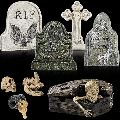 Yookeer Halloween Fish Tank Decor Aquarium Decor Terrarium Aquarium Skull Miniatures Resin for Halloween Village Accessories Collections Set Fish Tank Reptile House Cave